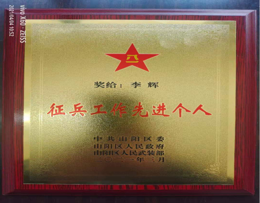在会议中宣布了2020年度高校征兵工作先进单位和先进个人。我校征兵工作突出,向部队输送优秀大学生士兵173人,超额完成征集100人征兵任务,被授予“征兵工作先进单位”称号,校武装部部长李辉同志荣获 “征兵工作先进个人”。