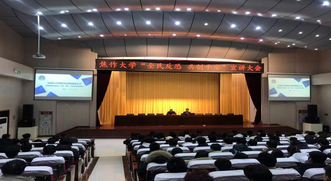 宣讲大会由3044永利处长田庆伟主持,焦作市公安局反恐工作支队政委李欣宁主讲,整个宣讲大会进行了2个半小时,李欣宁政委主要从当前我们国家面临的反恐形势、什么是恐怖主义、我国各种宗教的起源及现状、边疆问题、怎样识别和防范恐怖主义行为等方面为大家详细介绍了当前校园反恐的主要内容。宣讲会上气氛活跃,李政委和大家的互动也赢得了在座同学们的阵阵掌声,这次宣讲不仅给大家上了一堂安全课,也让大家学习到了历史知识,拓宽了视野,使同学们对各种恐怖活动本质有了更深刻的认识,提高了自我保护能力,得到了师生们的普遍认可。