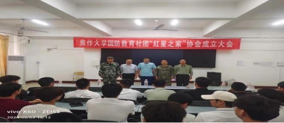为弘扬爱国主义精神,普及国防教育知识,增强学生国防意识,提高学生综合素质,经学校批准,报经焦作市山阳区人武部同意,2024年6月3日下午,我校国防教育社团“红星之家”协会正式成立。